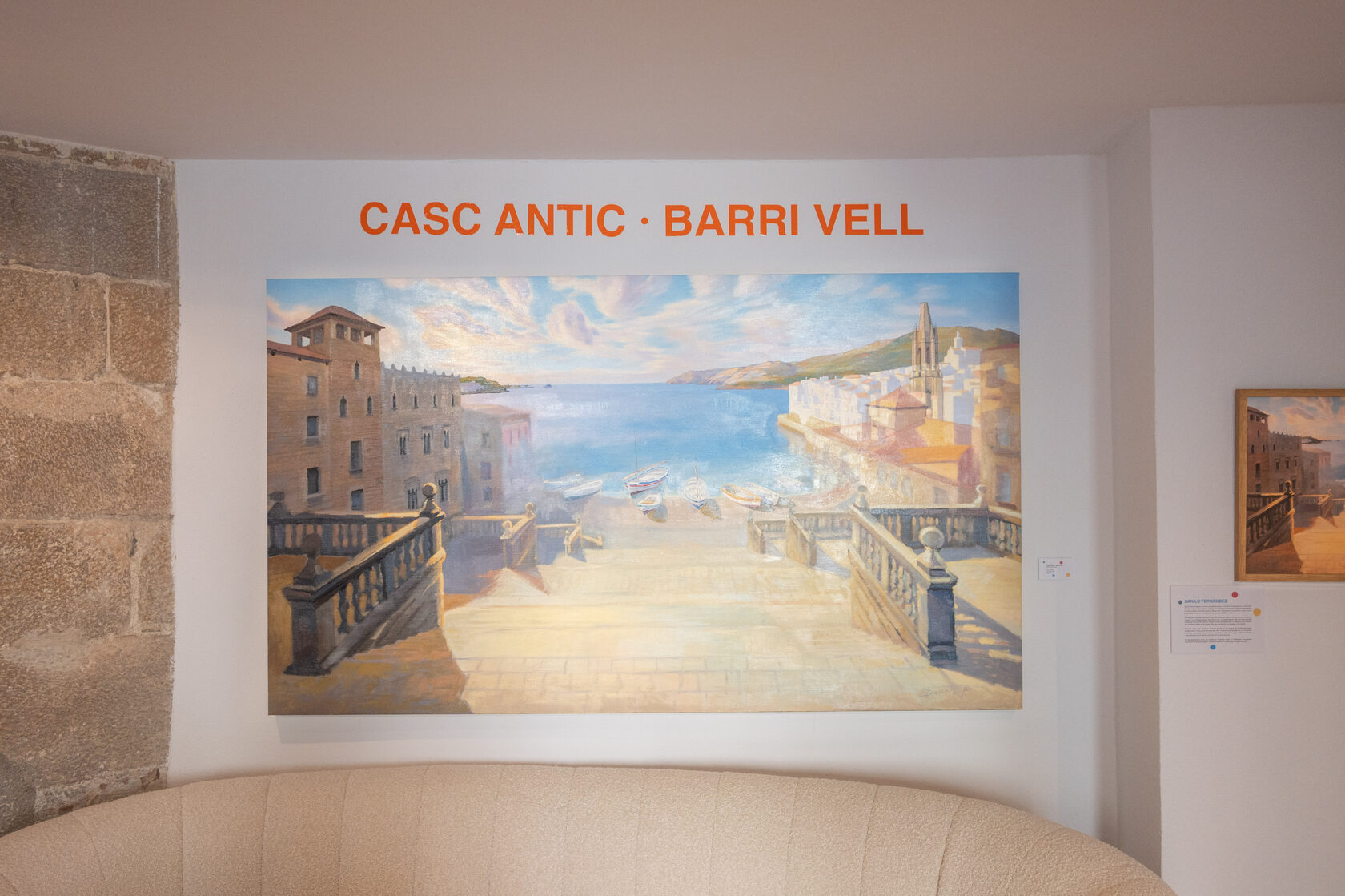 I per tancar, Danilo Fernández, veí de Cadaqués des de fa dècades i mestre de la llum i l’aigua. Les seves obres impressionistes freguen el realisme amb una força vibrant. La peça central de l’exposició, creada especialment per a l’ocasió, ens convida a somiar: una vista imaginària des de les escales de la Catedral de Girona, que es fon amb el port de Cadaqués en una escena onírica i cinematogràfica, digne d’una escena de Joc de Trons.