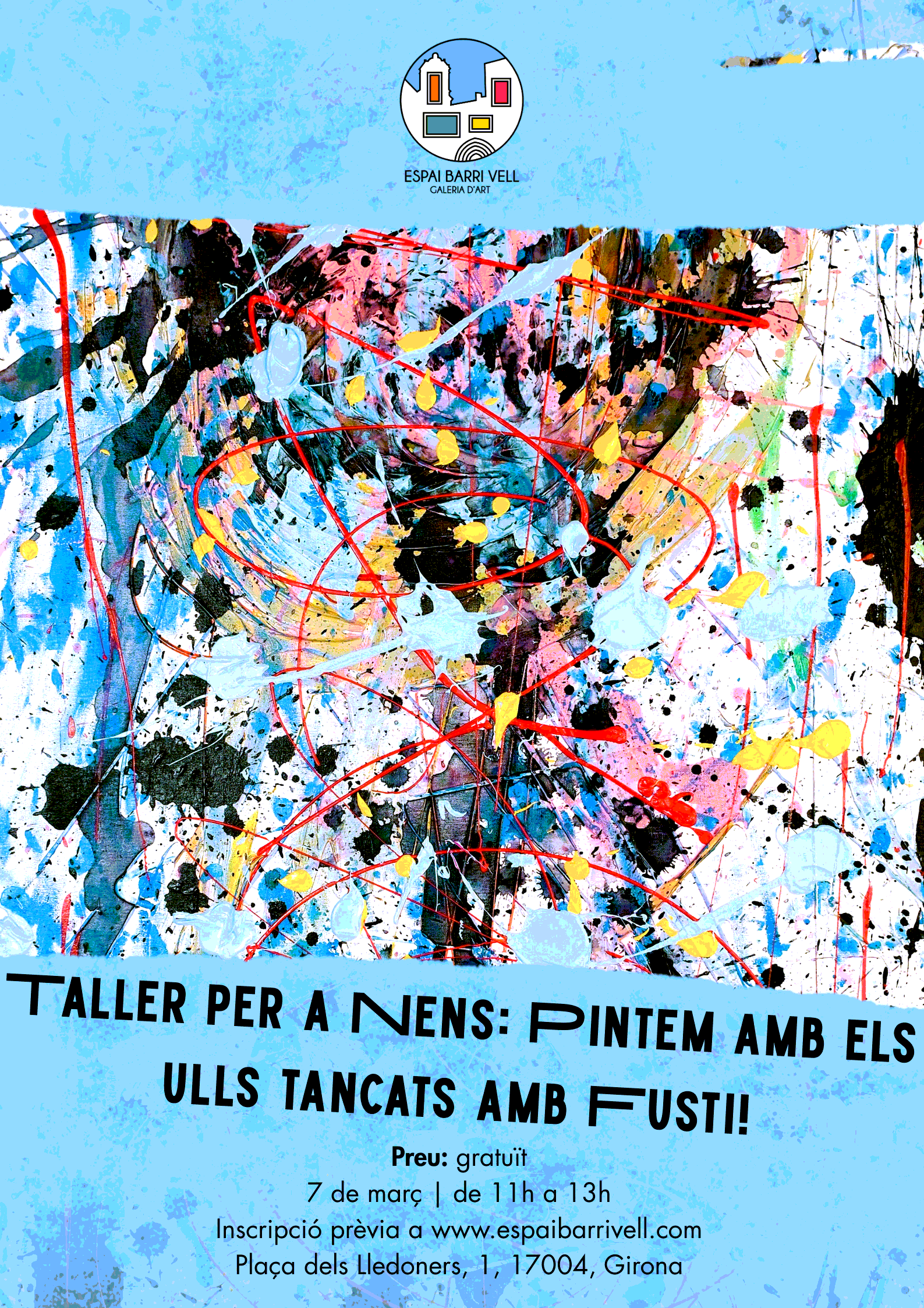 El taller convida els nens i nenes a pintar amb els ulls tancats, treballant des del gest, el ritme i el moviment del cos. Aquesta proposta connecta directament amb el llenguatge pictòric de Fusti, on la pintura esdevé un espai per sentir, viure l’instant present i donar forma a les emocions a través del color i la matèria.